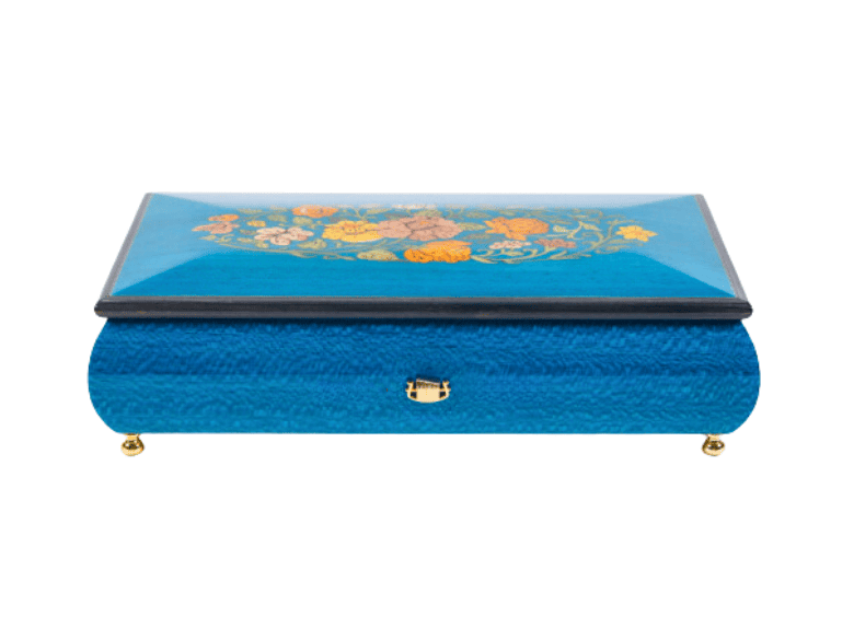 - Handcrafted Marquetry Inlay: The lid showcases intricate floral patterns created through expert hand-inlay techniques.