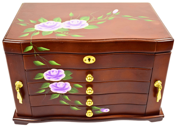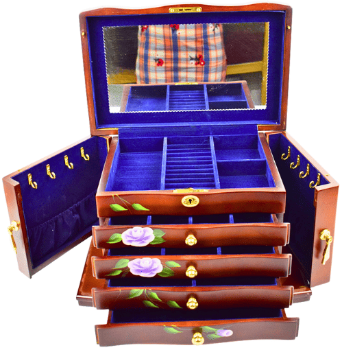 Wooden jewelry box with drawers