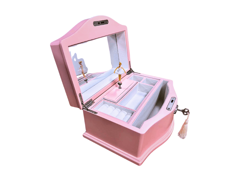 A built-in mirror provides convenience for makeup. As one of the leading wooden music box manufacturers, we specialize in creating high quality music box. We are also happy to offer a music box with custom song, allowing you to choose melodies like Christmas carols, “Happy Birthday,” Valentine’s tunes, and more.